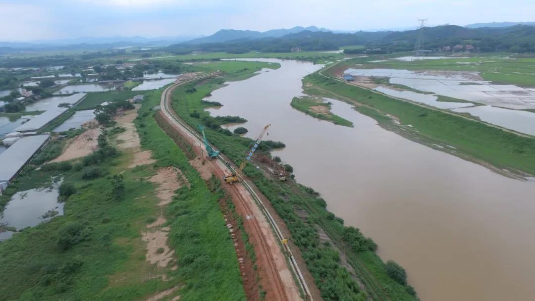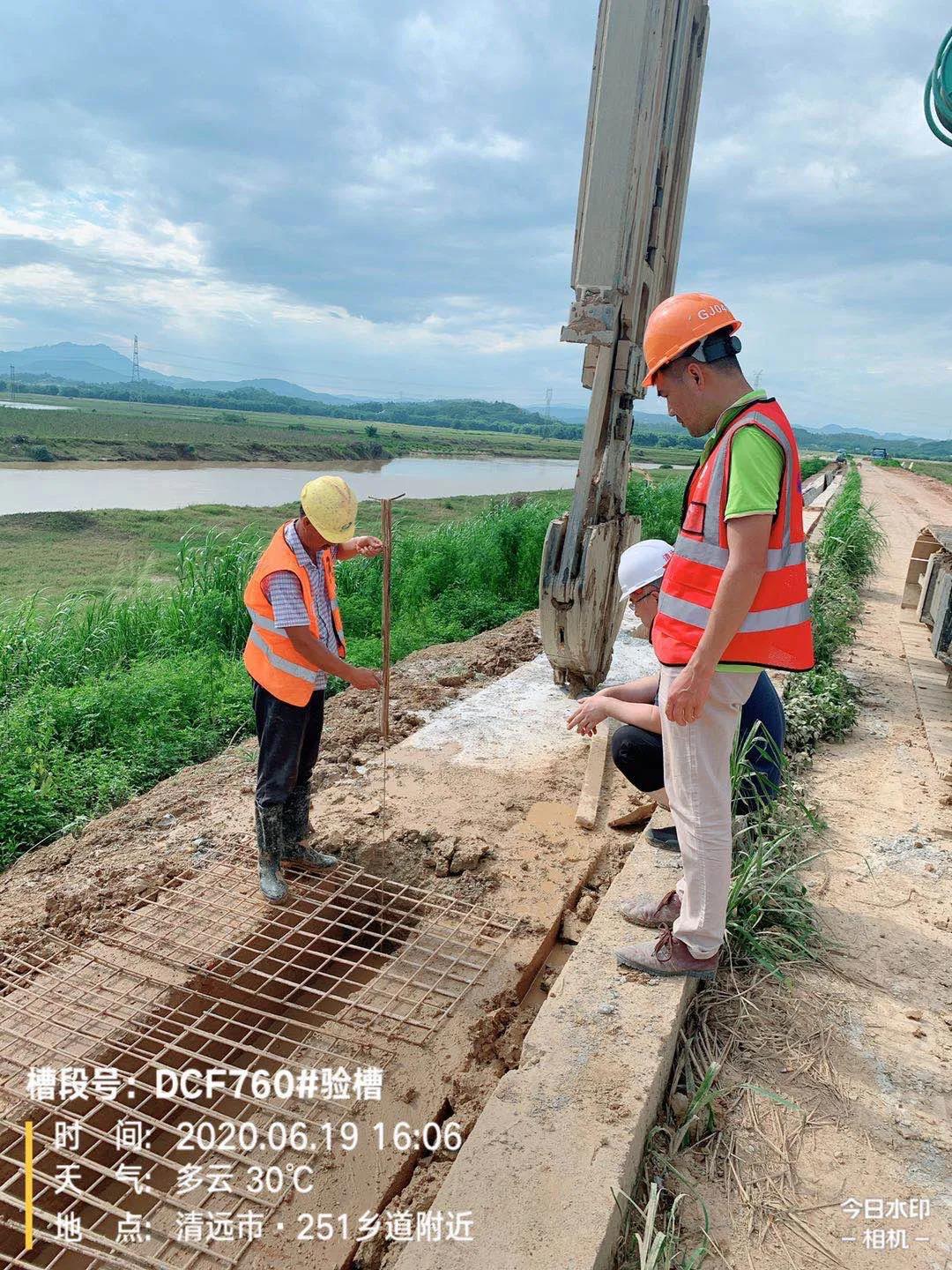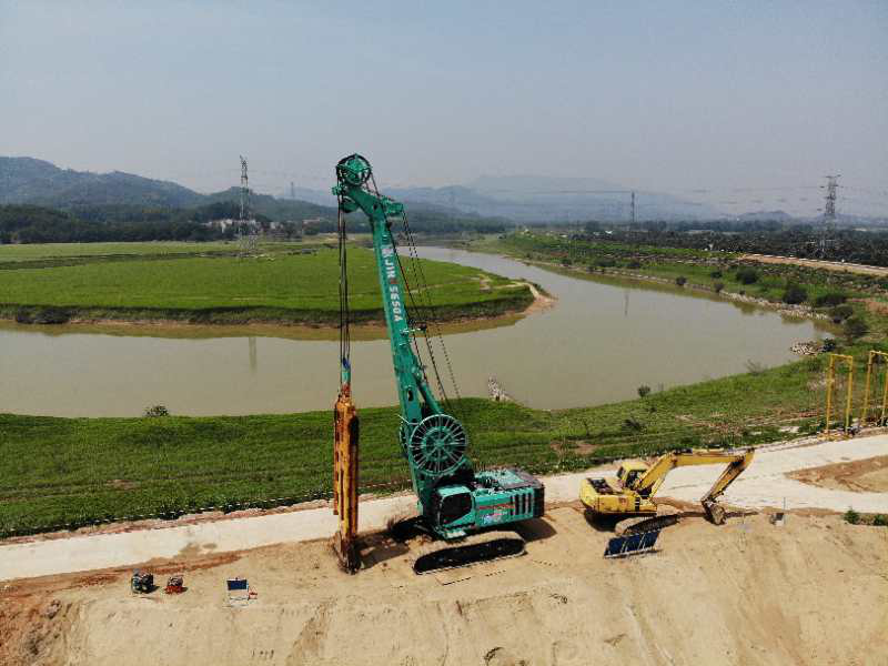 該工程(一標(biāo)段)由廣東水電二局股份有限公司承建,廣州峻業(yè)基礎(chǔ)工程有限公司負(fù)責(zé)本標(biāo)段防滲墻施工,選用金泰SG50A和SG46A液壓連續(xù)墻抓斗完成施工,工程總量約20137.2立方,防滲墻5204m,預(yù)計(jì)2020年9月上旬完成施工。主要任務(wù)是防御潖江洪水,在潖江蓄洪區(qū)啟用時(shí)圍內(nèi)蓄滯洪水。主要施工內(nèi)容:提升培厚、混凝提防滲墻、提頂?shù)缆贰⒆o(hù)坡、新建大廠北水閘、新建大廠南電排站、新建林塘圍水閘,新建林塘圍電排站。
