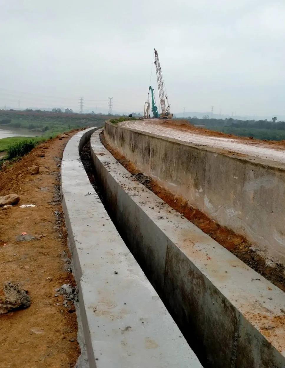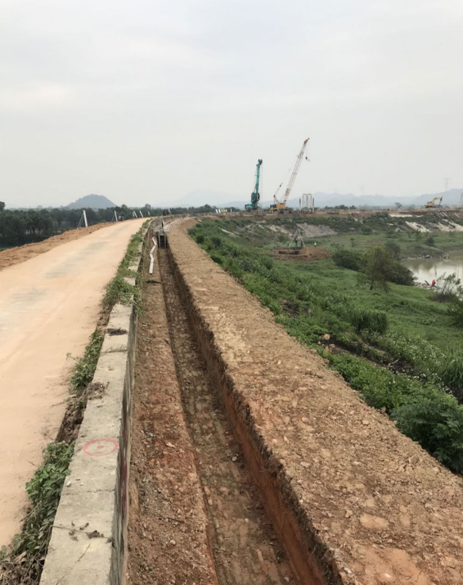 據(jù)廣州峻業(yè)公司王經(jīng)理介紹,“本項(xiàng)目施工最大難點(diǎn)在于堤圍頂部寬度僅約5米難以滿足設(shè)備施工需求,同時(shí)標(biāo)段施工現(xiàn)場(chǎng)內(nèi)有3條高壓線及1條低壓線影響工程施工。
