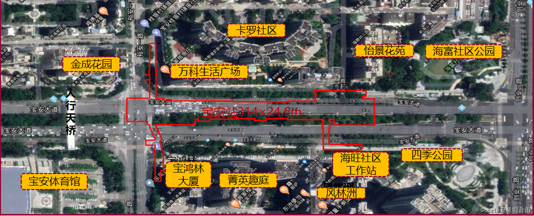 SX50在建施工的寶安站位于寶安大道上,處于裕安一路與創(chuàng)業(yè)一路之間,為穗莞深城際深圳寶安至前海段的第二座車站。該車站規(guī)模314m(長(zhǎng))×25.1m(寬),基坑開(kāi)挖深度為30.5~32.87m,地下三層雙柱三跨島式車站,明挖順作法施工,附屬設(shè)4個(gè)出入口,2組風(fēng)亭。周邊建筑密布,沿線主干道兩側(cè)分布有地下通訊管線、電纜、燃?xì)鈿夤艿馈⒔o排水管等各種類型的地下管道及線路,埋藏情況較為復(fù)雜。