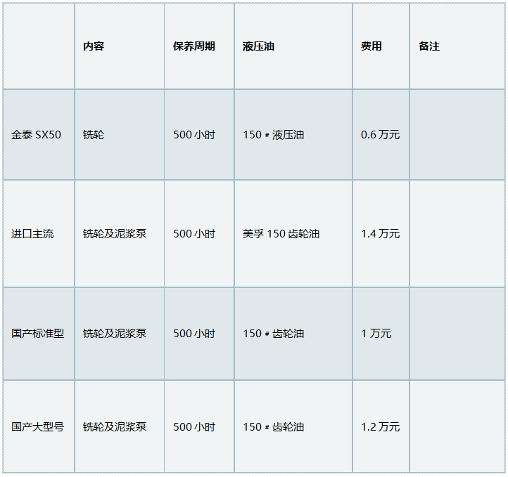 由此可見(jiàn),金泰SX50氣舉反循環(huán)雙輪銑的后期保養(yǎng)費(fèi)用比以上3款泵吸雙輪銑來(lái)的更經(jīng)濟(jì)實(shí)用,大大節(jié)約了設(shè)備保養(yǎng)費(fèi)用不說(shuō),還節(jié)約了不少人工成本。