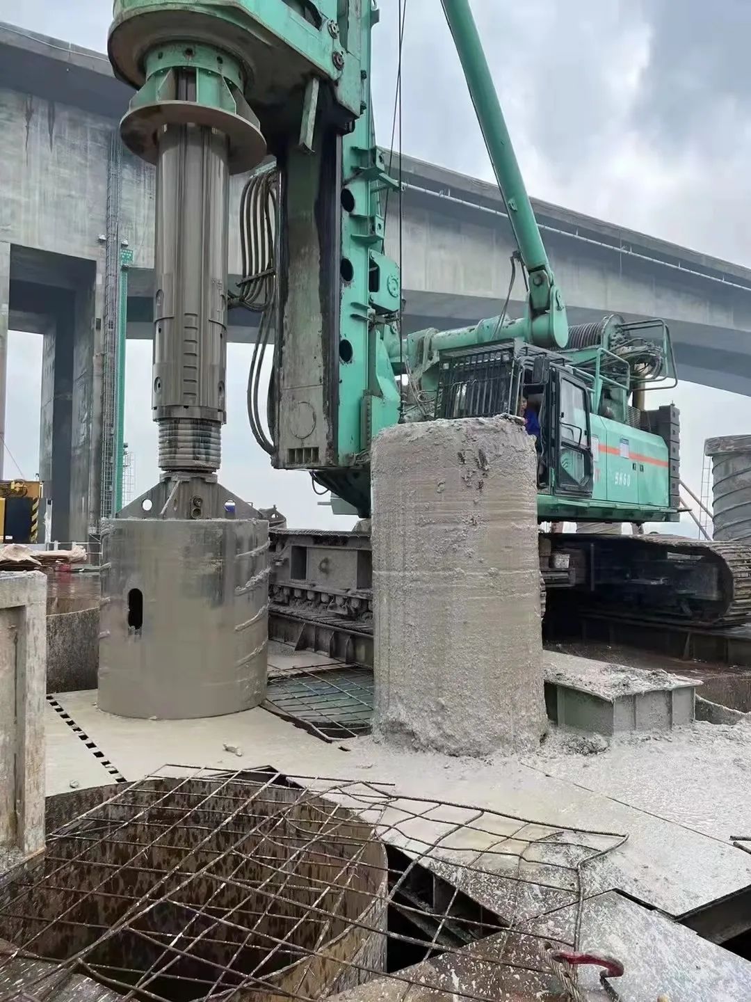 金泰大型旋挖鉆機SH60、SH46A具備上述施工所針對的大、深、硬條件。如圖所示,金泰SH60和SH46A旋挖鉆機在深層鉆孔入巖表現(xiàn)極為出色,總包方對設備的施工進度也非常滿意。