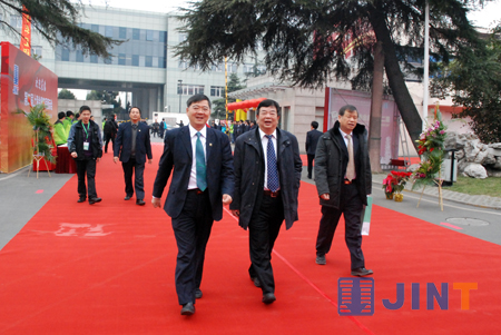 12月20日清晨,上海金泰廠區(qū)鑼鼓喧天,彩旗飄揚,空氣禮炮聲此起彼伏,處處洋溢著一派節(jié)日的喜慶。“90華誕”的巨型標志矗立在工廠大門,醒目而熱烈;紅地毯鋪就的“星光大道”從工廠大門一直延伸至產(chǎn)品展示區(qū),在道路兩旁形似“風(fēng)帆”的廣告旗襯托下,顯得隆重而活潑;公司禮堂裝飾一新,燈光、音響和多媒體設(shè)備渲染出主題會場祥和、歡快的氛圍……