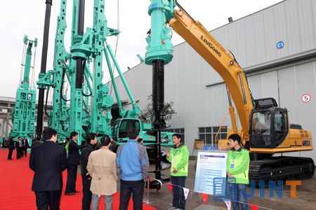 參觀結(jié)束后,大家相繼步入公司禮堂參加主題報告會。會上,上海機電股份有限公司常務(wù)副總經(jīng)理王心平對金泰本次展會的效果和近年來所取得的成就給與了高度的評價,并鼓勵金泰充分挖掘自身的潛力,借助柳工國內(nèi)外銷售網(wǎng)絡(luò)和在工程機械行業(yè)領(lǐng)先地位,將“上海金泰”的品牌及技術(shù)優(yōu)勢不斷放大,把企業(yè)做大做強。柳工集團總裁楊一川說,上海金泰有深厚的技術(shù)積淀和優(yōu)秀的管理團隊,是柳工“十二五”期間實現(xiàn)“千億戰(zhàn)略”的重要陣地,也是柳工樁工機械板塊實現(xiàn)突破的“排頭兵”……。