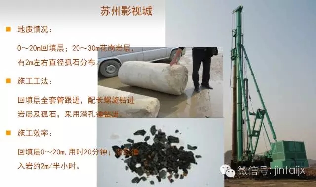 基于上述情況,項目部決定同時引進多種工法設備進行試樁,試樁的深度為該工程樁基礎設計深度:14-35米不等,試樁結果如下表: