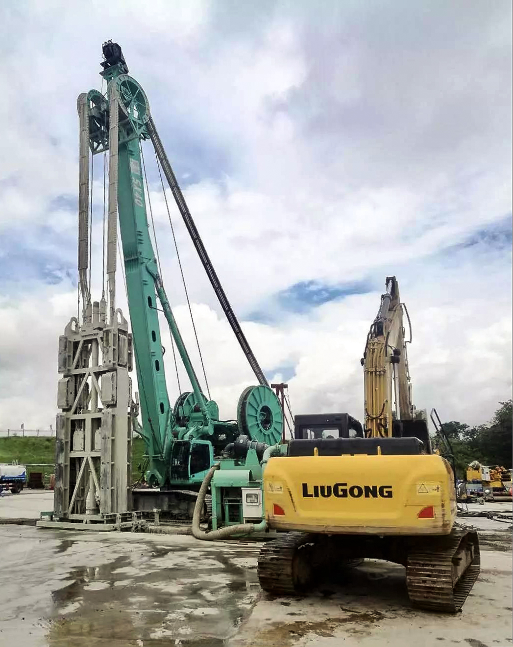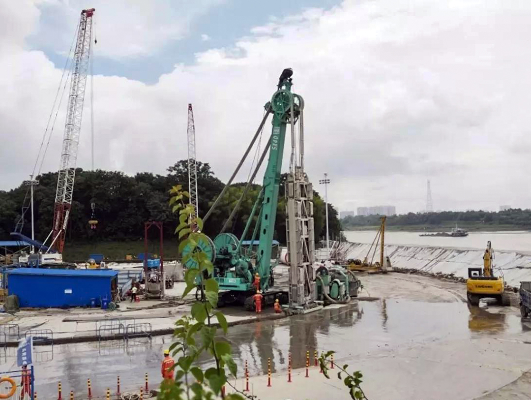 日前,工程承建單位廣西路橋集團(tuán)、施工單位廣東深大基礎(chǔ)公司以及設(shè)備供商上海金泰三方領(lǐng)導(dǎo)親臨施工現(xiàn)場(chǎng)視察。廣東深大基礎(chǔ)公司的李總對(duì)金泰SX40雙輪銑的穩(wěn)定性和施工效率給予了高度的評(píng)價(jià):“金泰的雙輪銑為我們的施工進(jìn)度提供了有力的保障,從5月初正式開(kāi)工至今,設(shè)備已運(yùn)行了近1600小時(shí),沒(méi)有發(fā)生任何故障,至今已順利完成了80%的工程,而且維護(hù)成本相當(dāng)?shù)停鹛┑碾p輪銑高效穩(wěn)定,能力強(qiáng)勁,不負(fù)使命!”