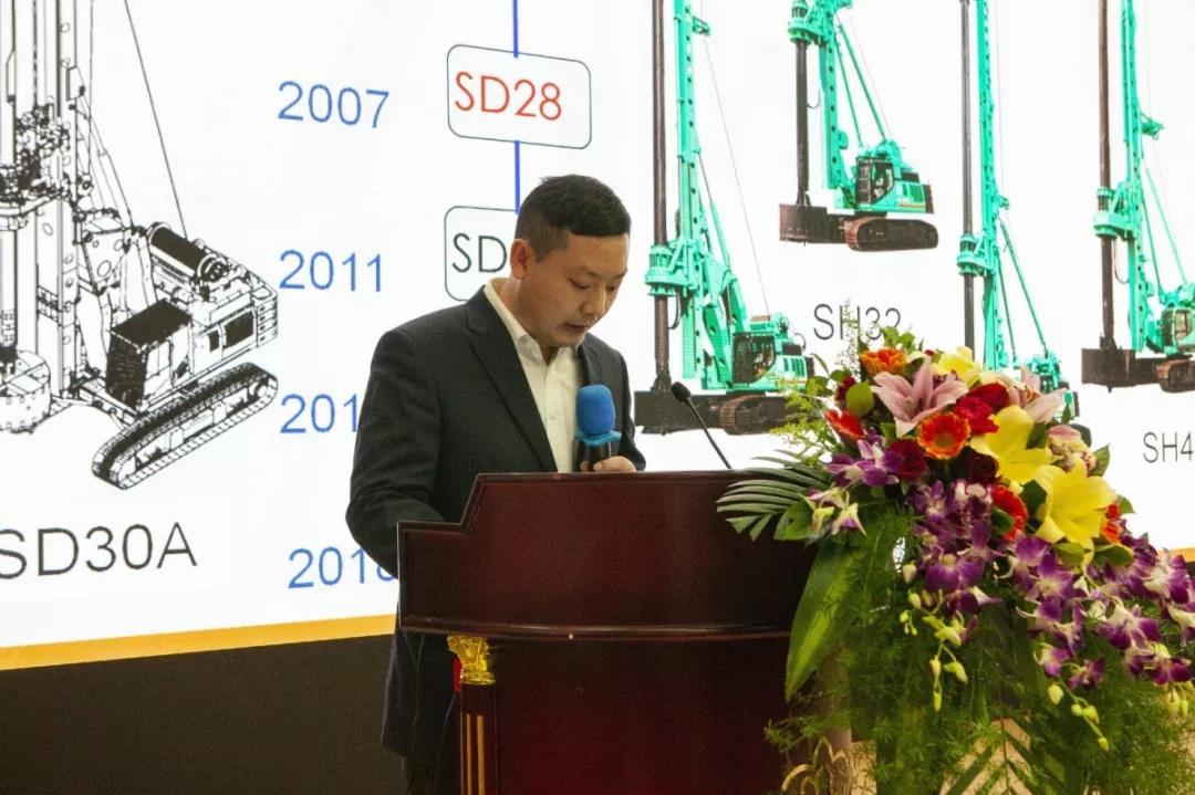 上海金泰副總經(jīng)理營銷公司總經(jīng)理徐峰先生在會議致辭中提到:“上海金泰作為國內(nèi)樁工行業(yè)歷史最悠久、產(chǎn)品門類最齊全、綜合能力最強(qiáng)的專業(yè)地下施工機(jī)械制造企業(yè),已有60多年的發(fā)展歷史。在這漫長的過程中,與在座的各位一起見證了我們國家改革開放取得的成果,同時創(chuàng)造了很多行業(yè)的第一,在80年代,我們成功研發(fā)制造了中國第一臺工程鉆機(jī),在90年代中期,在金泰誕生了中國第一臺中外合資生產(chǎn)的旋挖鉆機(jī)和第一臺液壓連續(xù)墻抓斗,同時也研發(fā)生產(chǎn)出了中國第一臺SMW工法鉆機(jī),進(jìn)入21世紀(jì),又先后研發(fā)生產(chǎn)了中國第一臺雙輪銑、雙輪攪拌鉆機(jī)。尤其在近年來,我們在技術(shù)研發(fā)、產(chǎn)品創(chuàng)新、市場拓展方面都取得了一系列的長足發(fā)展和成績,我們始終不會忘記,金泰每一步的發(fā)展,都離不開廣大客戶的信任與支持。”