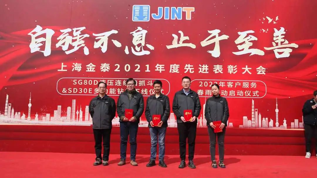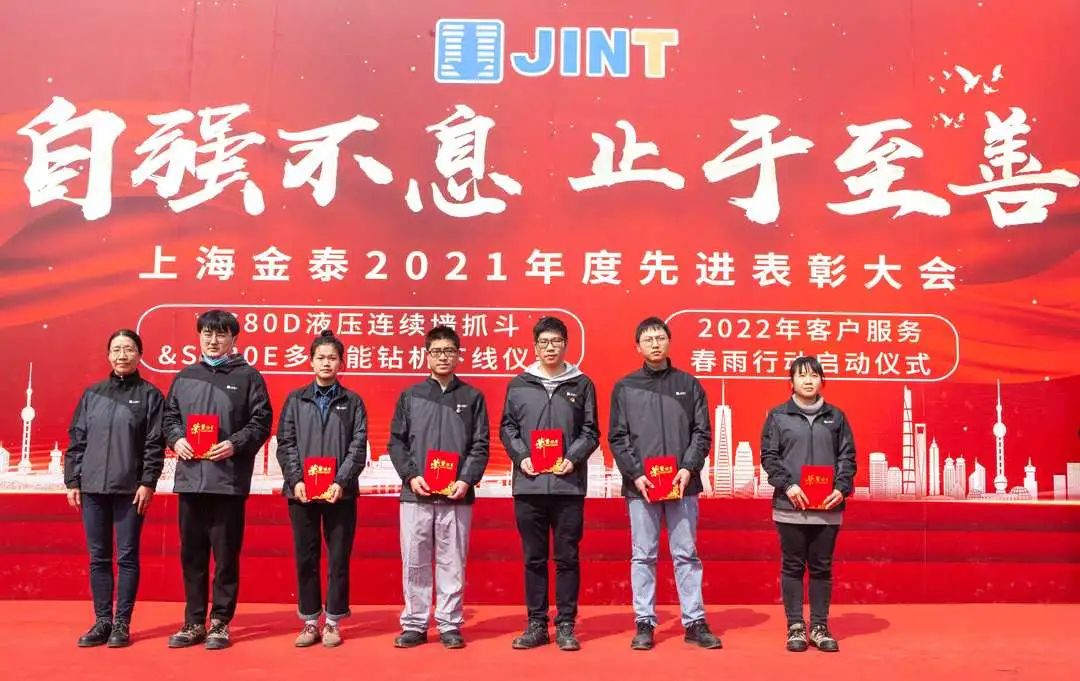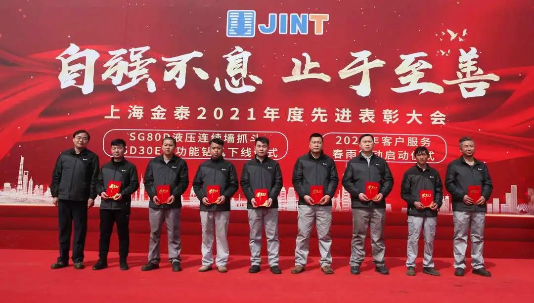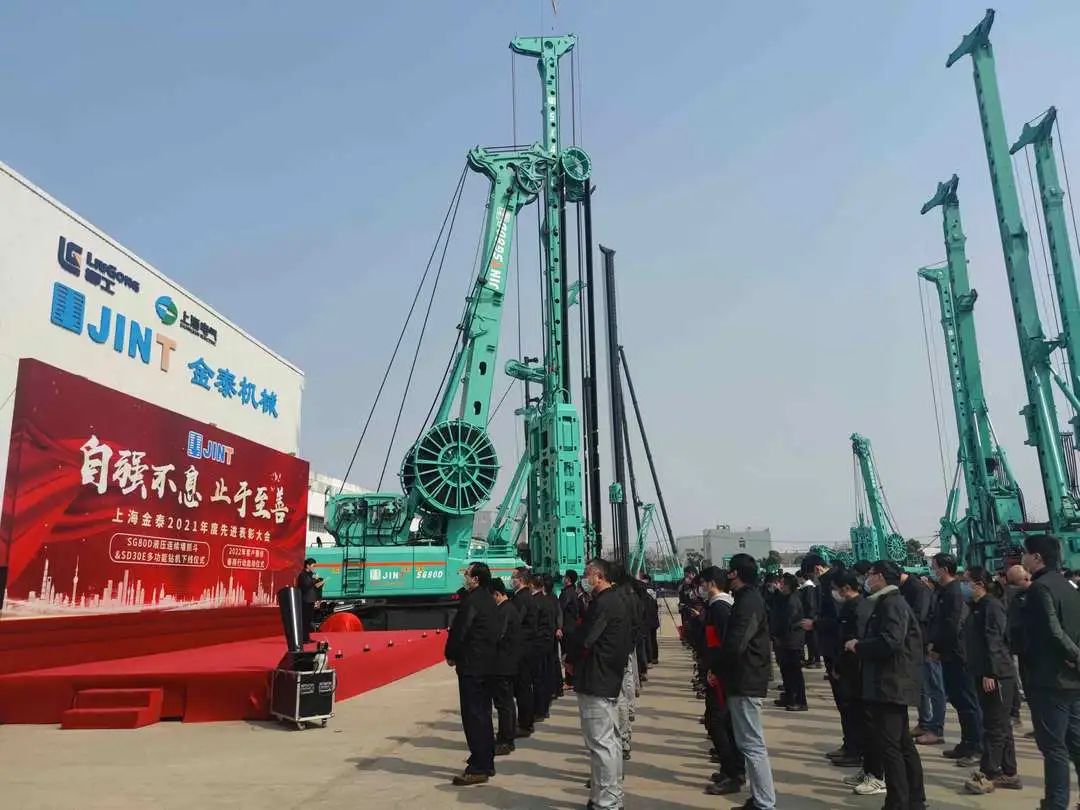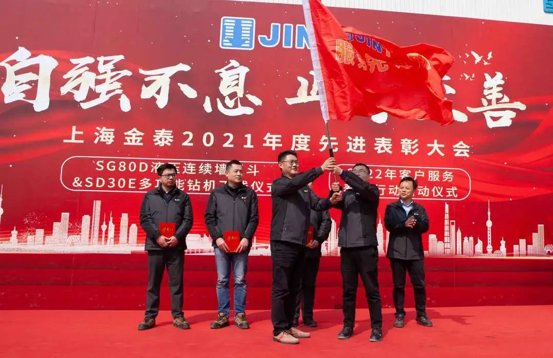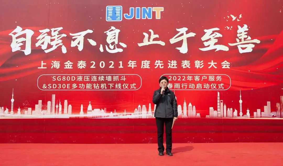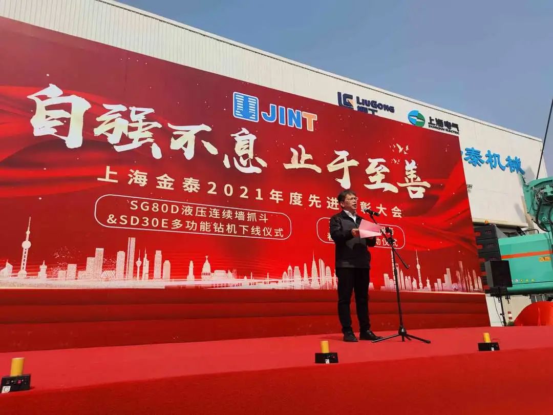 “下線!”“出發!”“勵志!”   3月2日,上海金泰SG80D液壓連續墻抓斗與SD30E多功能鉆機下線、2022年客戶服務春雨行動啟動儀式暨2021年度公司總結表彰大會隆重舉行。