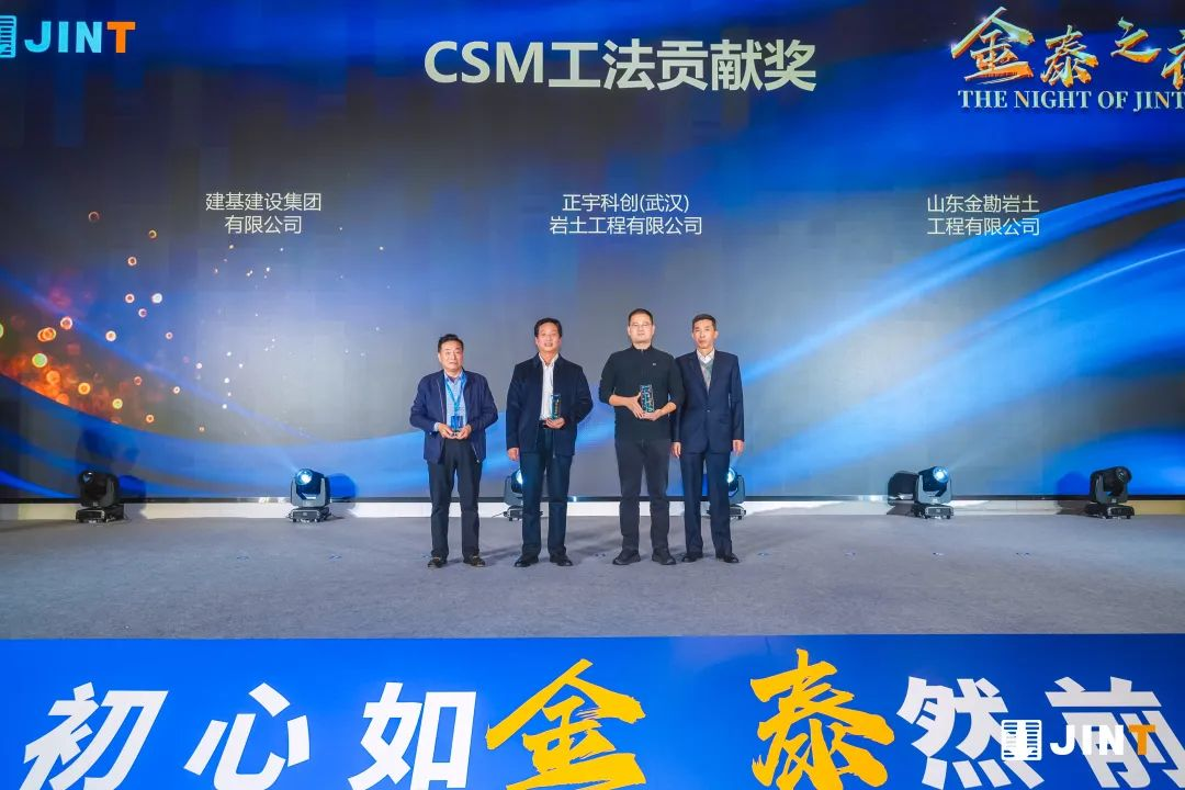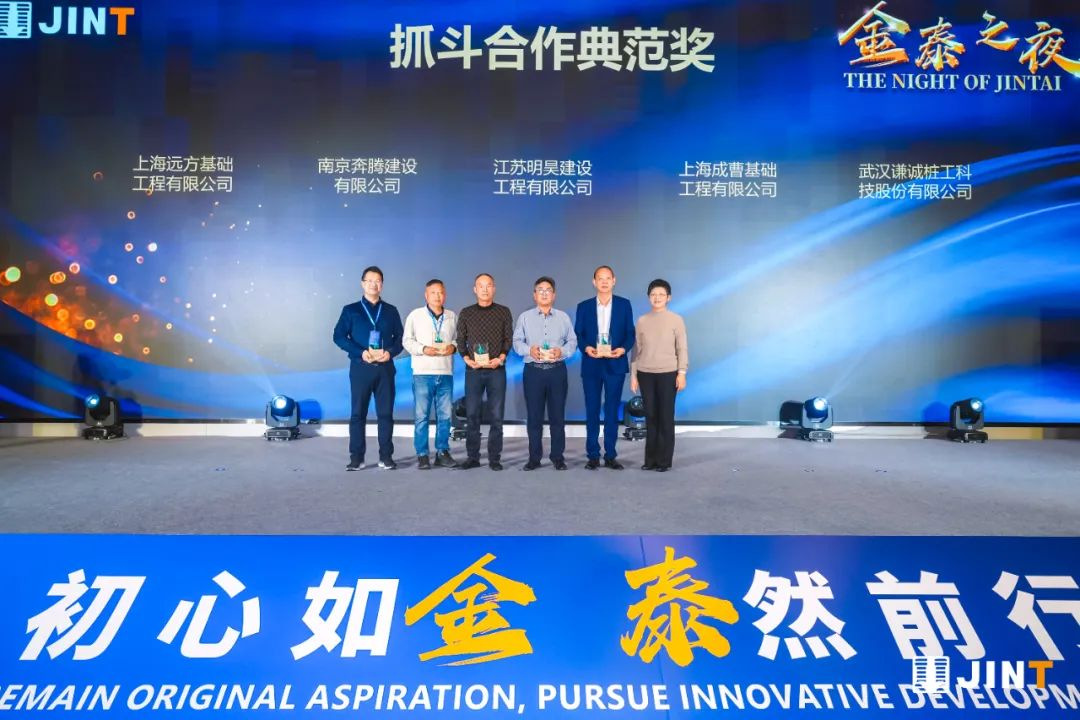 在“金泰之夜”答謝晚宴開始前,袁世國(guó)董事長(zhǎng)、丁靜羽副董事長(zhǎng)、金泰經(jīng)營(yíng)團(tuán)隊(duì)為與金泰保持長(zhǎng)期良好合作,對(duì)金泰產(chǎn)品和技術(shù)進(jìn)步起到重要推動(dòng)作用的行業(yè)客戶、專業(yè)客戶頒發(fā)了卓越合作獎(jiǎng)、風(fēng)雨同舟獎(jiǎng)、抓斗合作獎(jiǎng)、旋挖合作獎(jiǎng)、CSM工法貢獻(xiàn)獎(jiǎng)、雙輪銑貢獻(xiàn)獎(jiǎng)等6大類共41個(gè)獎(jiǎng)項(xiàng)。